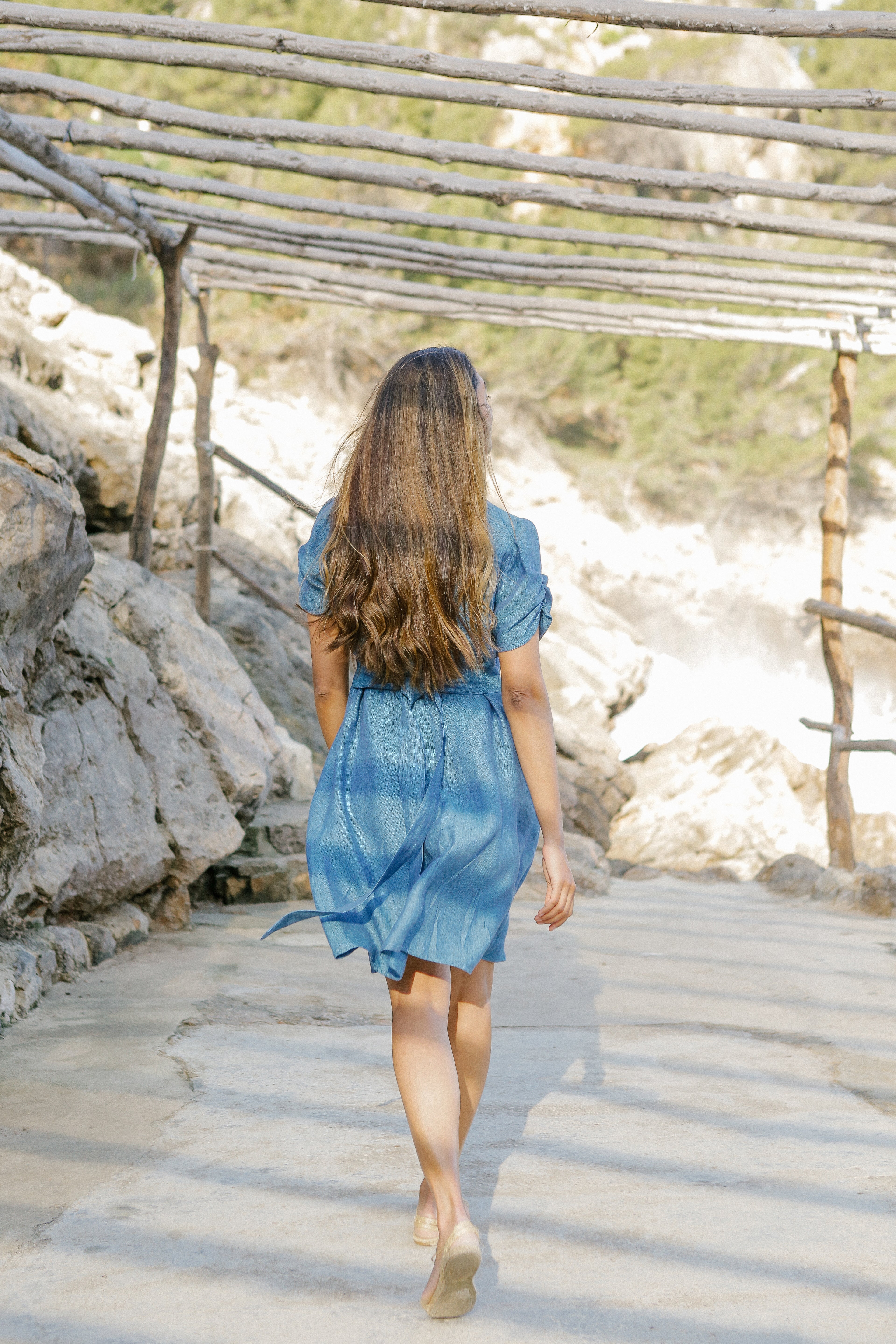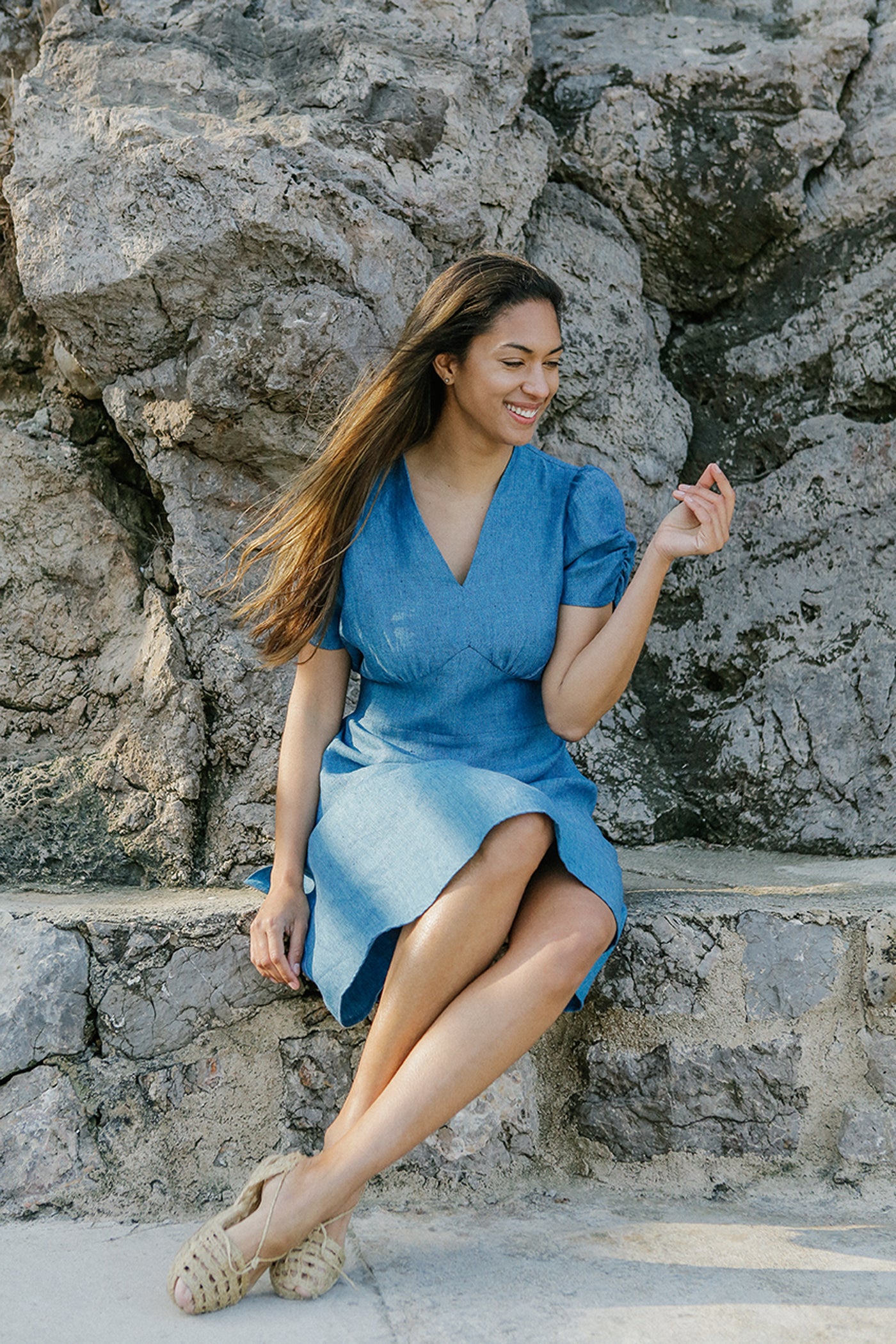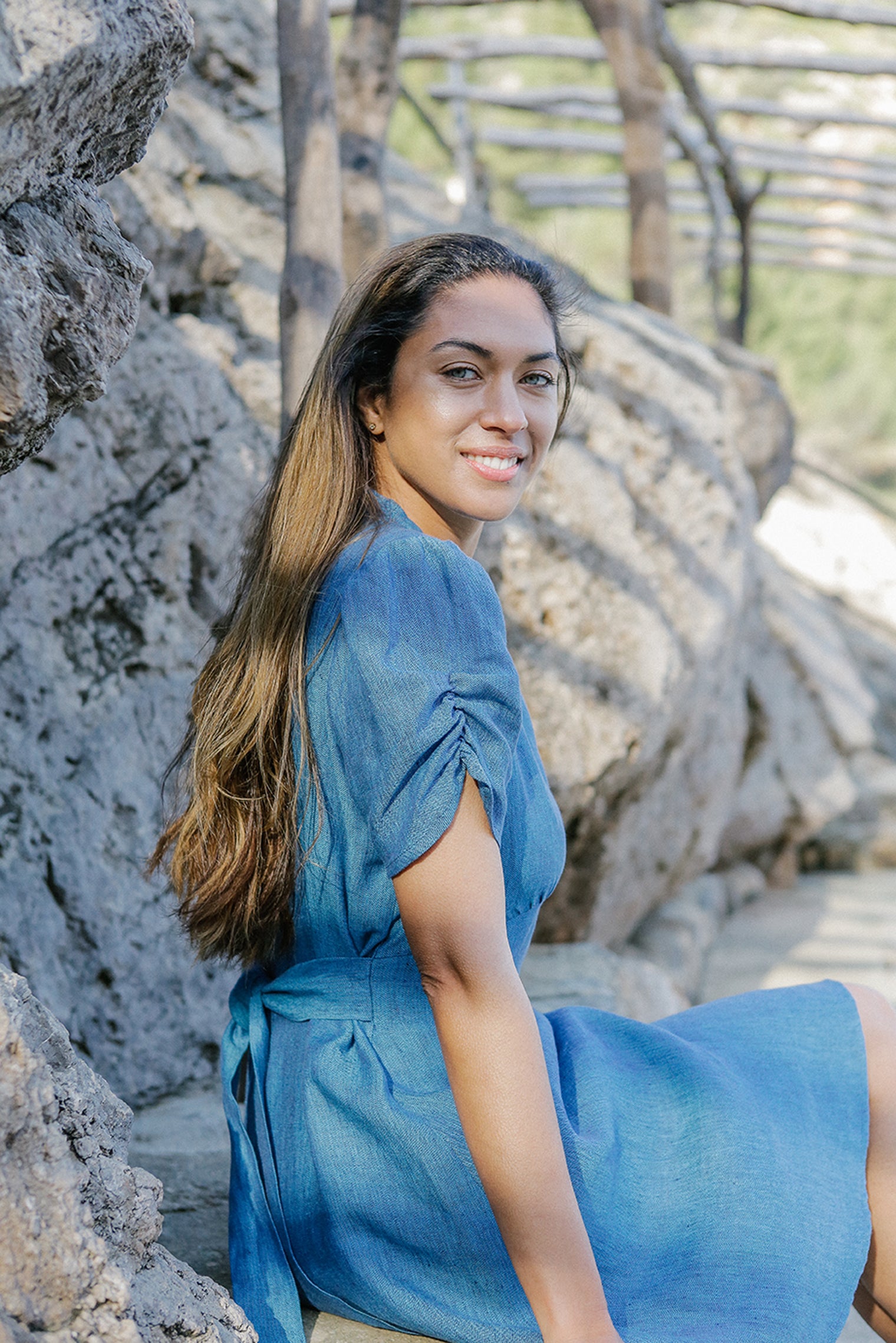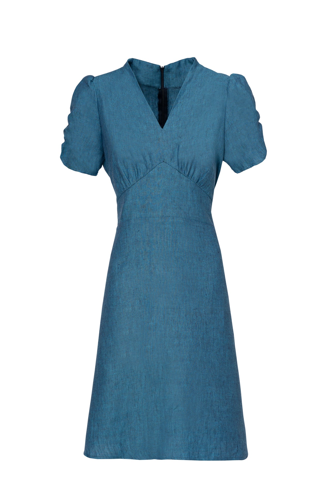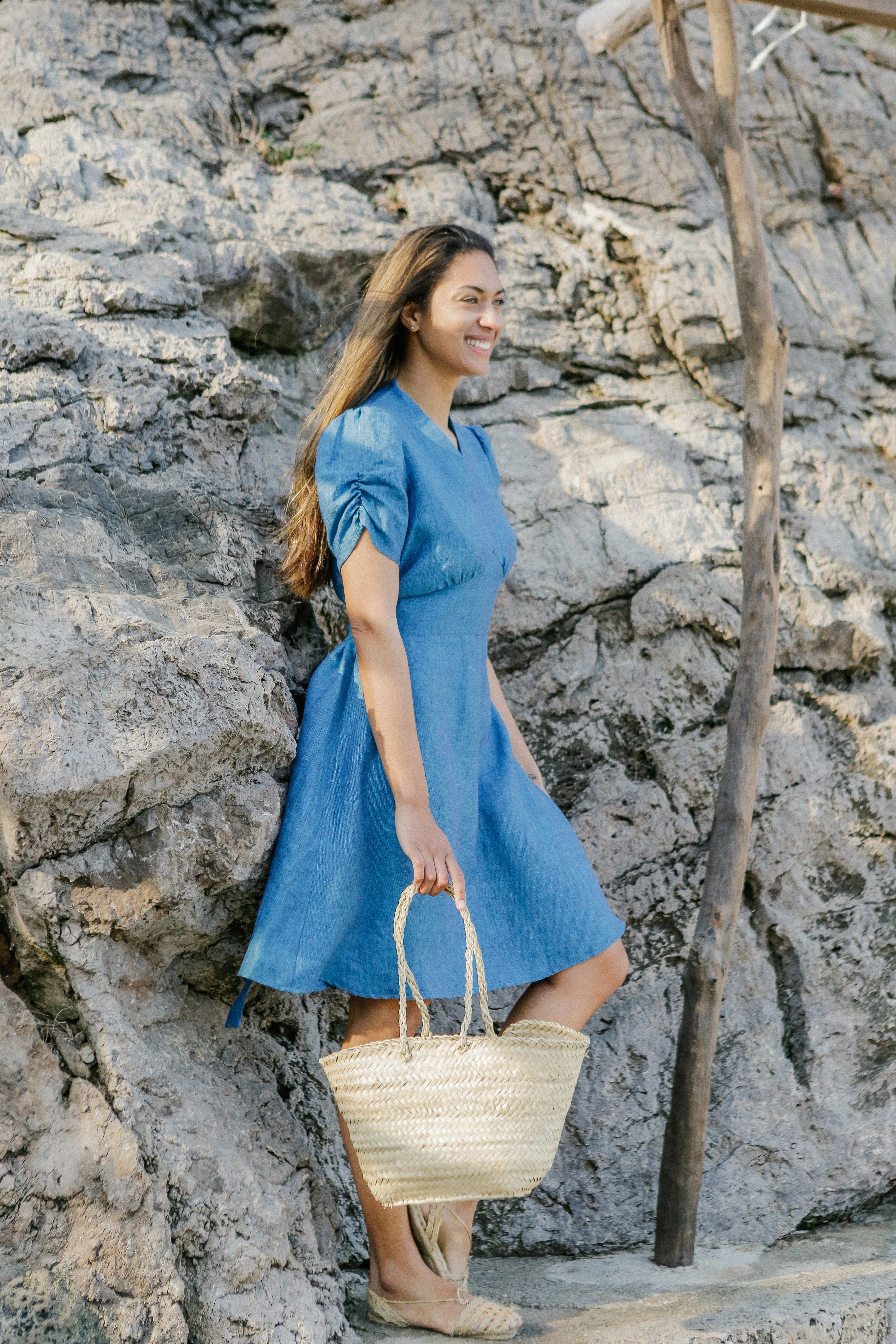 Cette robe mini fluide possède un décolleté en V doux, des manches bouffantes, des emmanchures cintrées et une large couture à la taille avec une longue ceinture. Elle est confectionnée à partir de lin 100 % naturel, frais et luxueux, et peut être portée en toute occasion. Lavage à la main ou en machine à 30°C. Séchage naturel. Ne pas sécher en machine. Repassage à la vapeur.