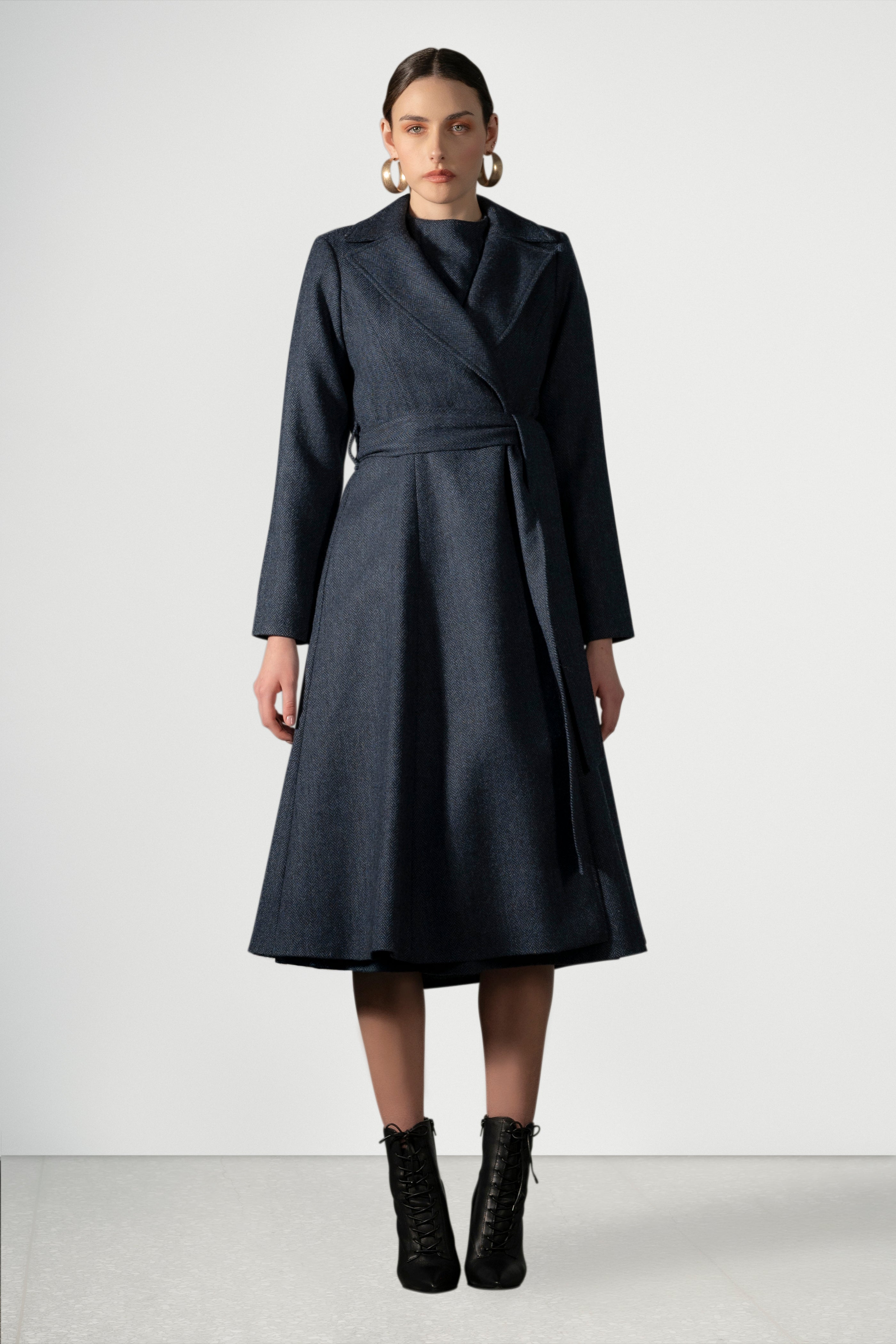 Le manteau bleu marine Palma de notre collection EVERGREEN est un classique intemporel, méticuleusement fabriqué à la main à Dublin à partir de laine irlandaise fine provenant de manufactures traditionnelles.