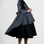 Sa silhouette à double boutonnage se resserre à la taille avant de s'élargir légèrement aux hanches, créant ainsi une forme en A élégante et flatteuse.