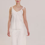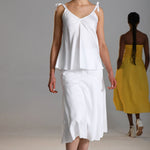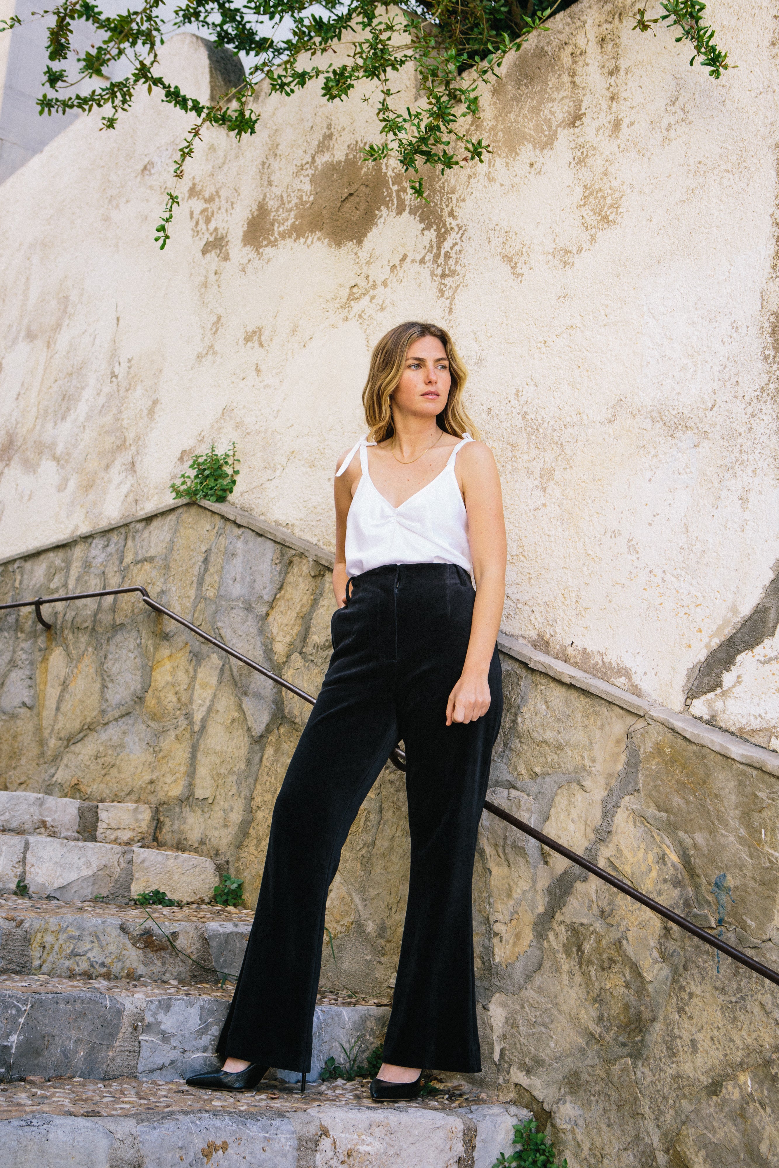 La blouse noire Port est une blouse sans manches idéale, avec des plis au niveau de la poitrine et des bretelles à nouer soi-même. Notre blouse, parfaite pour la vie quotidienne, est confectionnée dans une soie de bambou bio, dans un noir classique. Portez-la avec notre jupe Soller pour un look complet. - Plis au niveau de la poitrine - Bretelles à nouer soi-même - Noir - Fabriquée à la main en Irlande - 100% soie de bambou bio