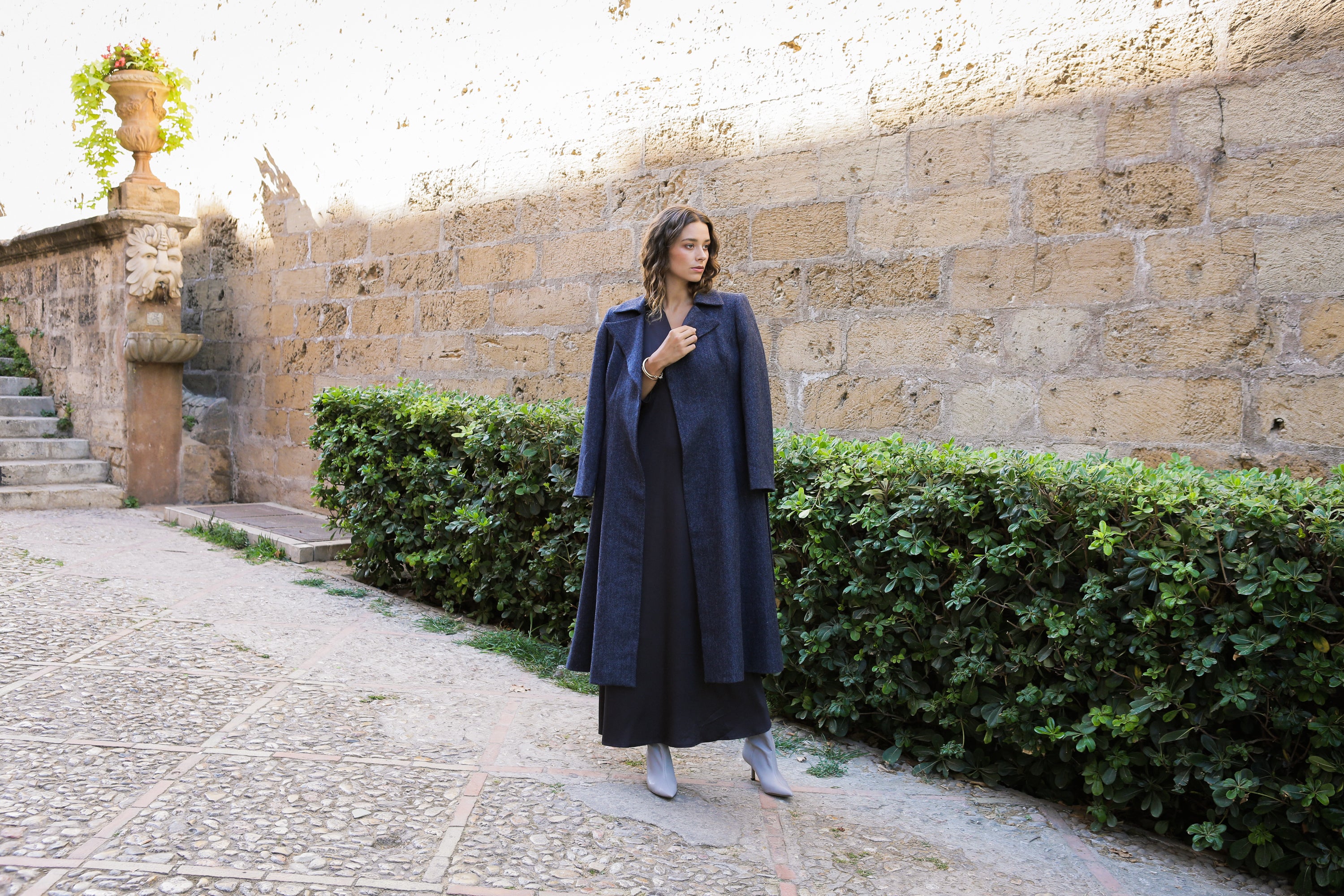 Ce modèle emblématique, synthèse profonde de la grâce de Majorque et de l'artisanat irlandais robuste, est rapidement devenu un best-seller. Ce n'était pas seulement un manteau ; c'était un plan directeur, définissant notre passage d'une marque de lin pur à une maison de couture et de confection distinguée, une orientation qui résonnerait pendant des années.