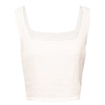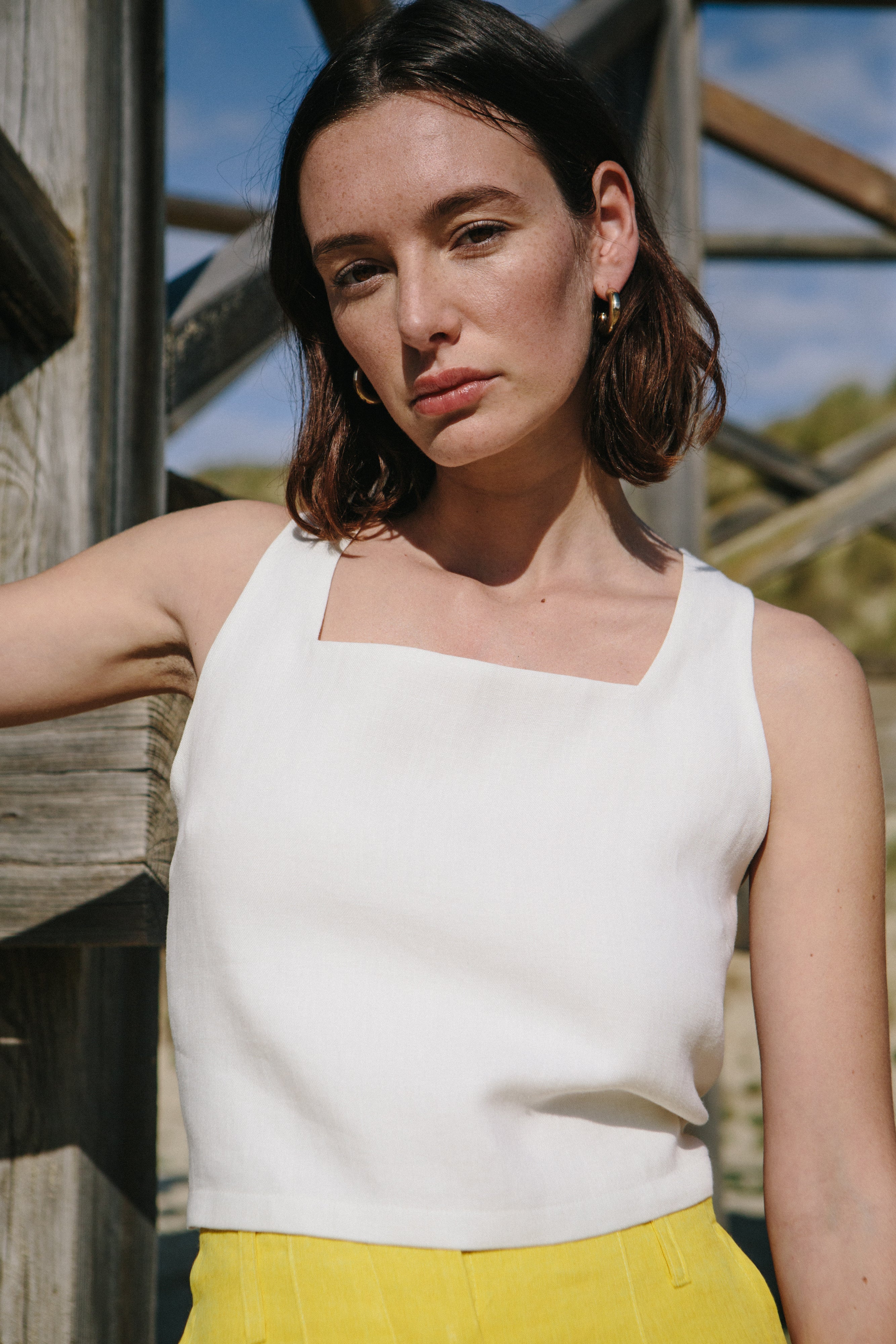 The classic everyday crop top. This style is made by hand from linen for lasting performance. It has a square neck for a relaxed and modern fit. Wear yours with any of our pants on any spring or summer afternoon. True to size. - Crop Top - Handmade - Linen - Square Neck