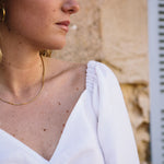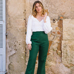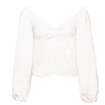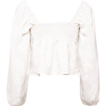 Freshen up your spring/summer wardrobe with this romantic white top. Made from Irish linen, it features romantic sleeves, a heart neckline, and a ruched back. This minimalistic and feminine look can be paired with any of the label's pants.