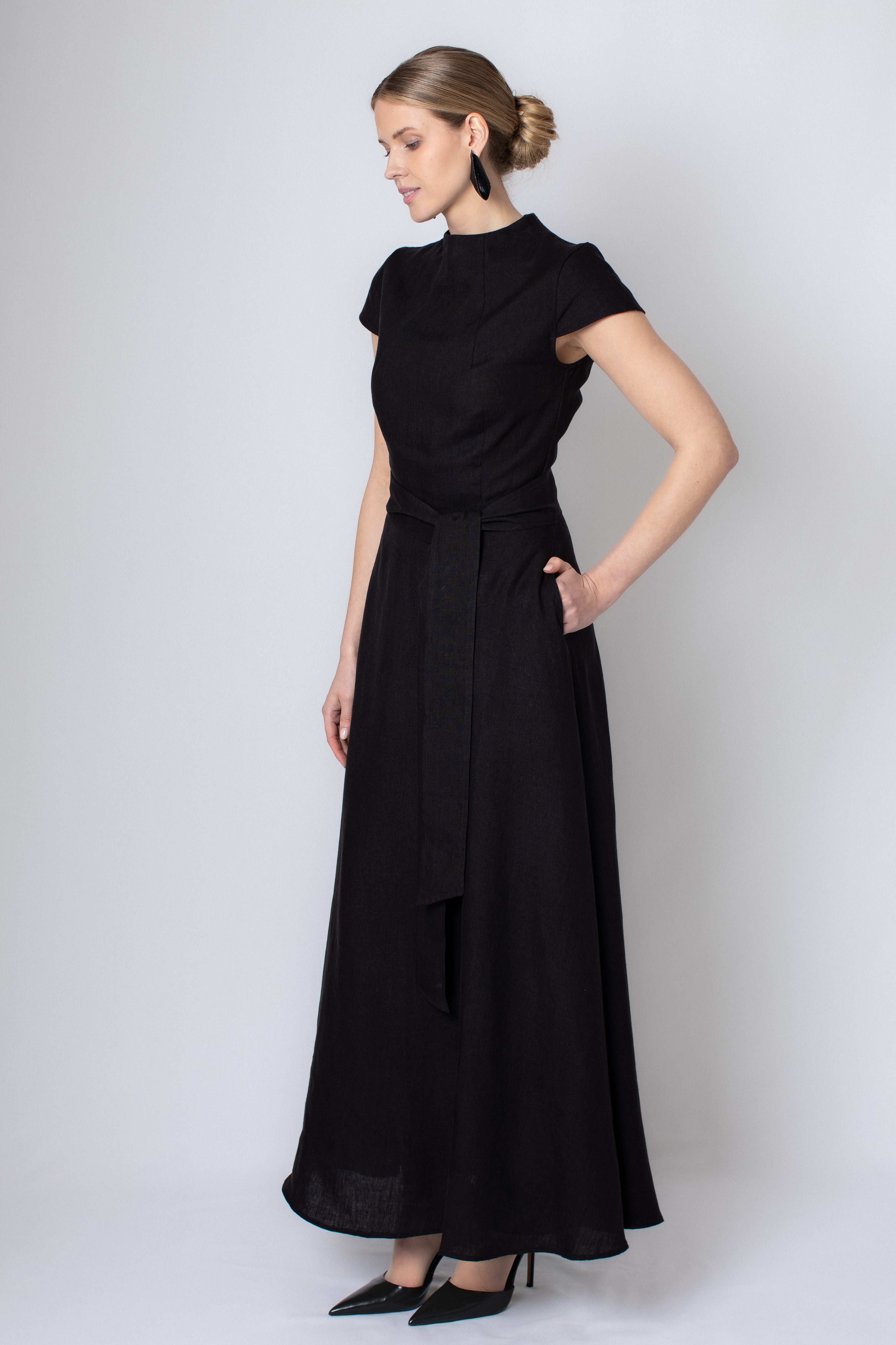 This maxi linen dress is handcrafted in Dublin from 100% Irish linen, featuring a subtle turtleneck and precision-placed front darts for a universally flattering fit. The flowing, floor-length silhouette offers effortless elegance and all-day comfort—equally polished for client meetings or weekend gatherings. The natural drape of Irish linen creates beautiful movement while remaining breathable and timeless. A versatile essential designed to be worn and loved for years.