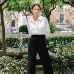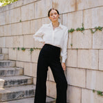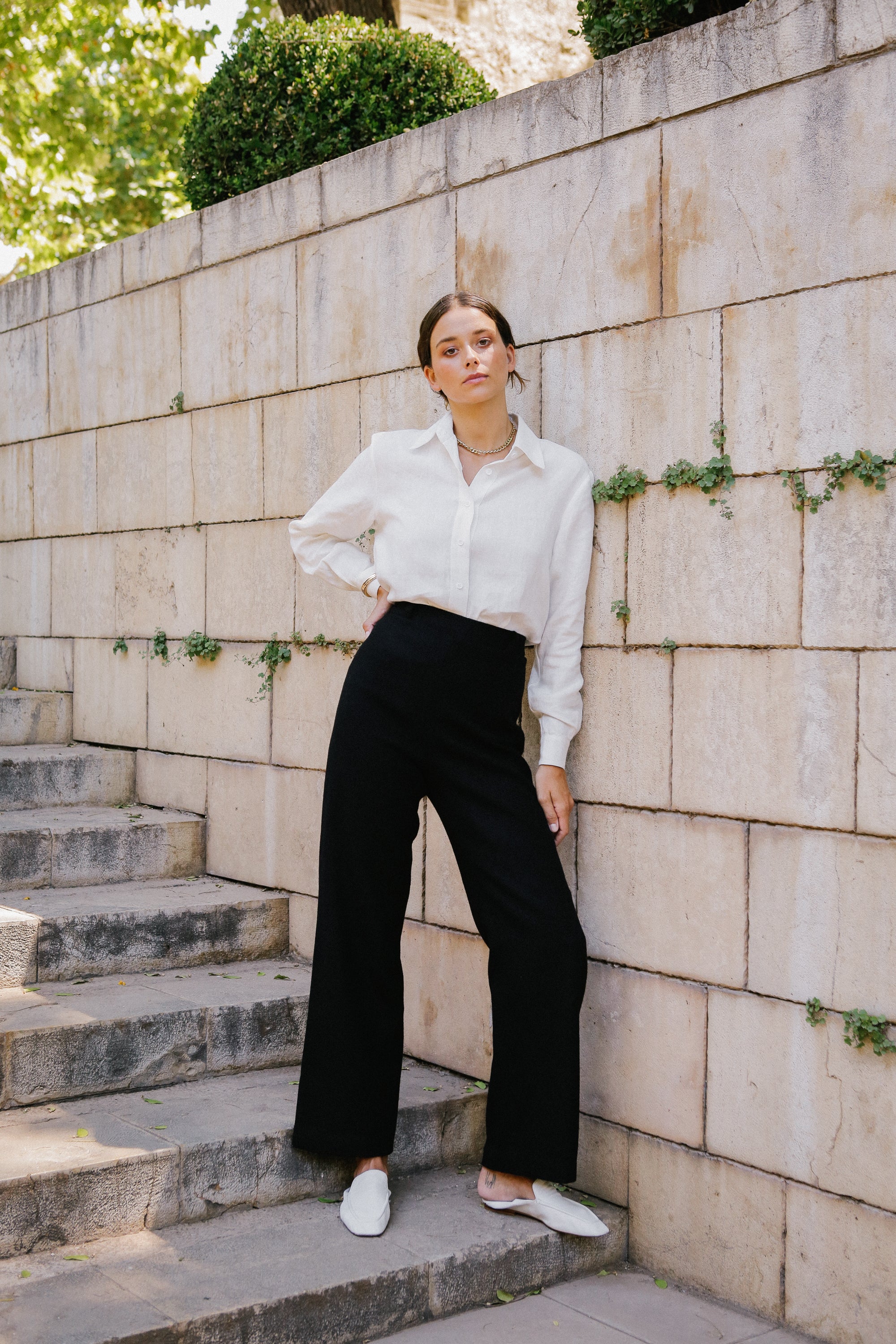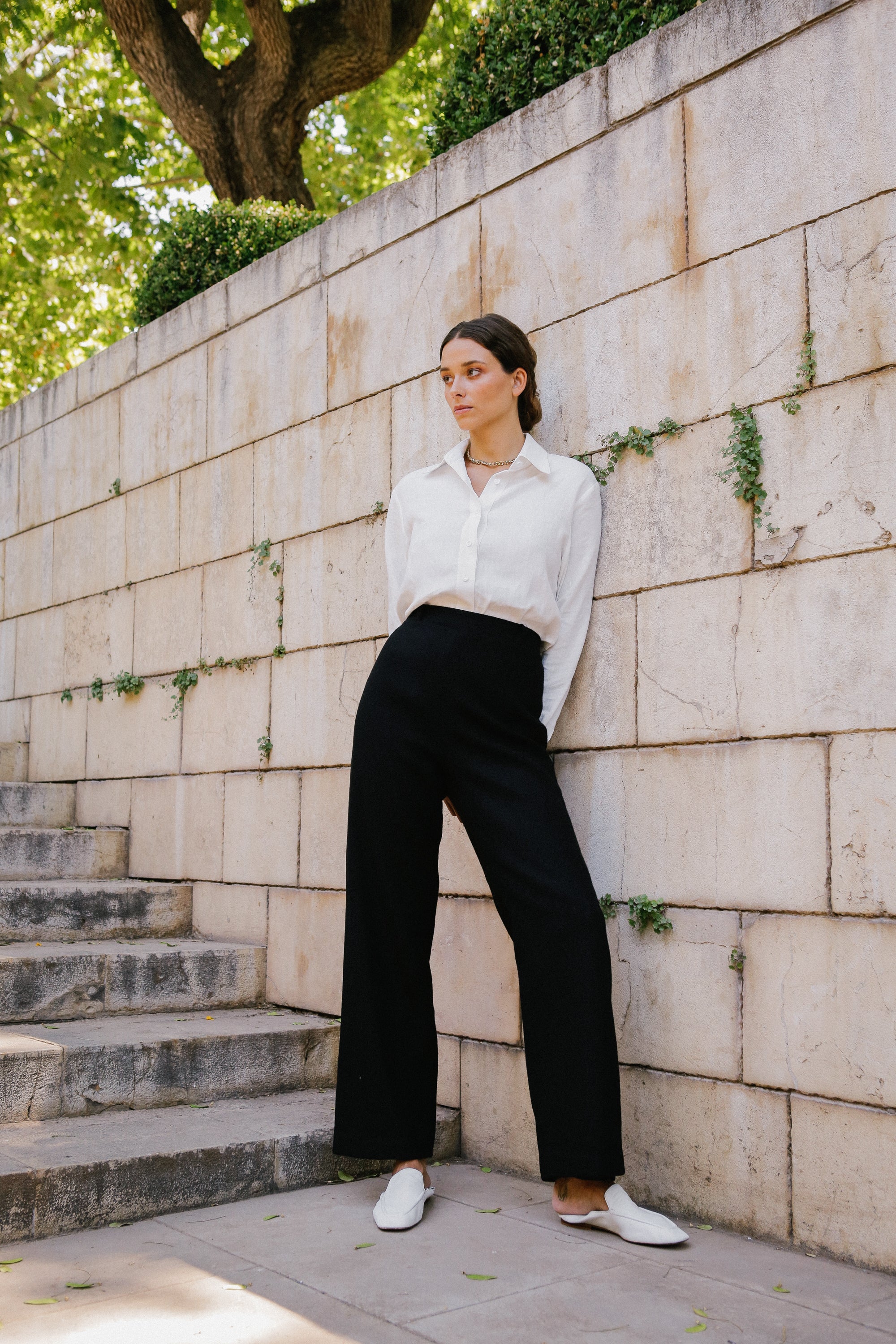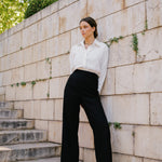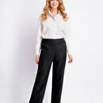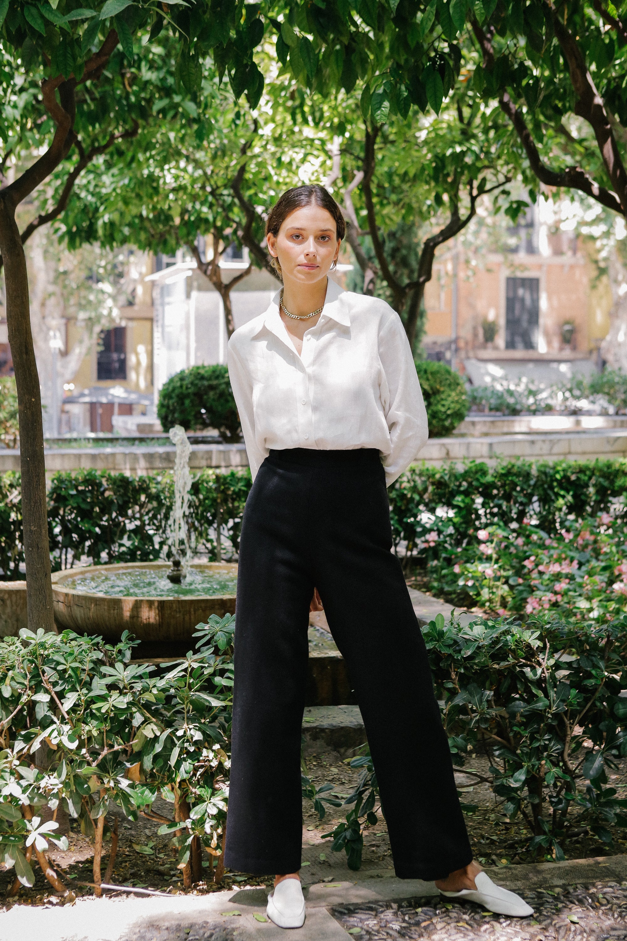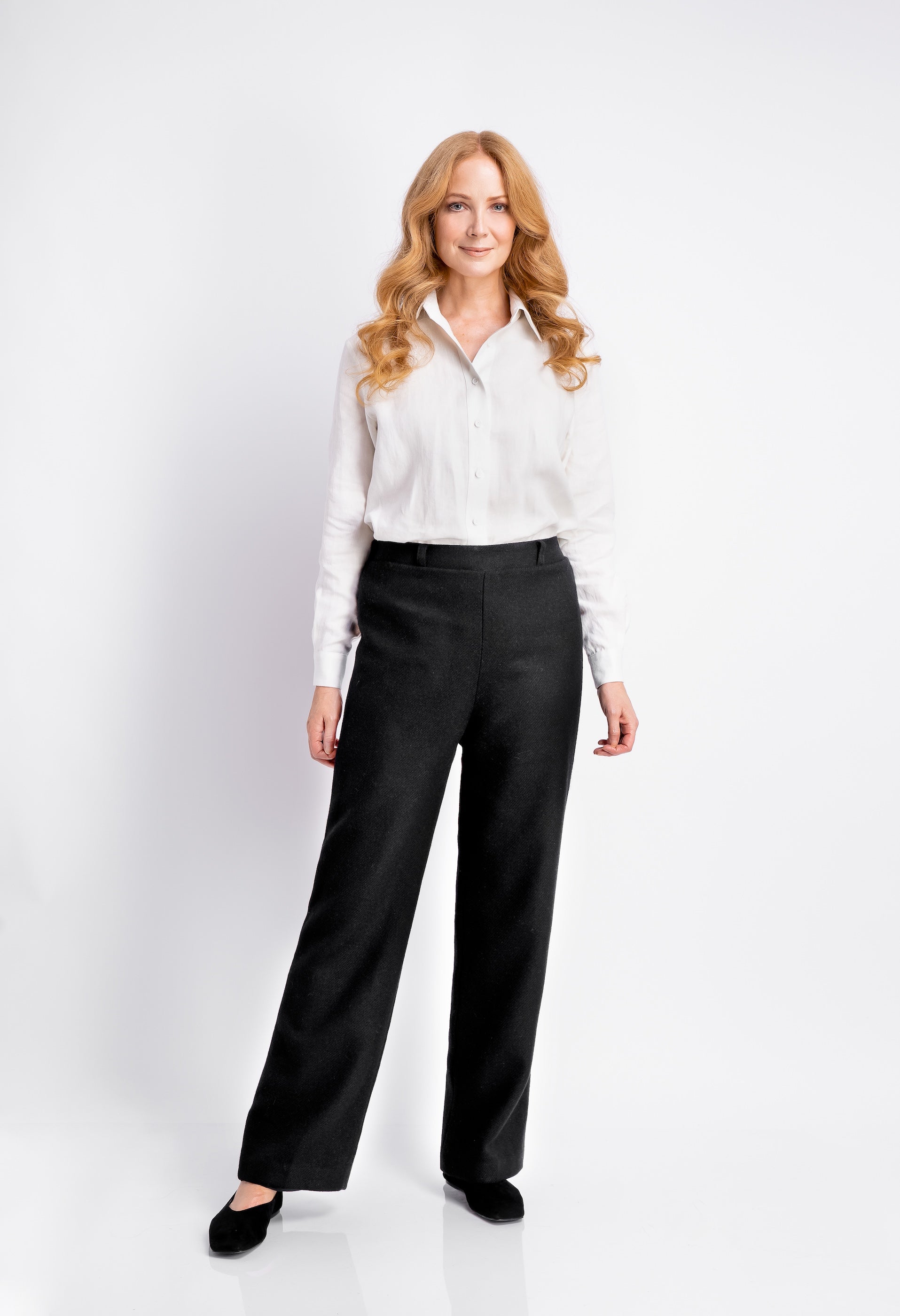 Loot to our wardrobe classics with a forward-thinking sustainable outlook. The Lana Black Wool pants will suit the smart-casual dress code. Made from 100% Irish wool with a high waist and wide legs cut for optimal comfort. - 100% Irish Wool - Black - Side slit pockets - High waist - Made in Ireland