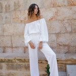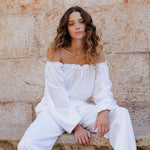 Lee’s white blouse design will lend your looks a romantic touch with a ruched neckline and puffed sleeves. It’s cut from organic bamboo silk to an airy, loose silhouette. Tuck it into the label’s pants to capture the spirit of our Palma’s Old Town collection.