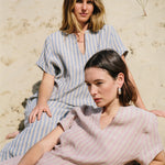 The Ocean Maxi Dress embodies the carefree spirit of days by the sea. The linen texture of this stunning pink and grey striped dress makes this effortless piece an absolute holiday staple. - Pockets - Pink stripes - Maxi Dress - Handmade in Ireland - Linen Hand wash or Machine wash 30C. Dry Naturally. Do not tumble dry. Steam Iron.