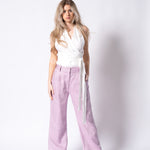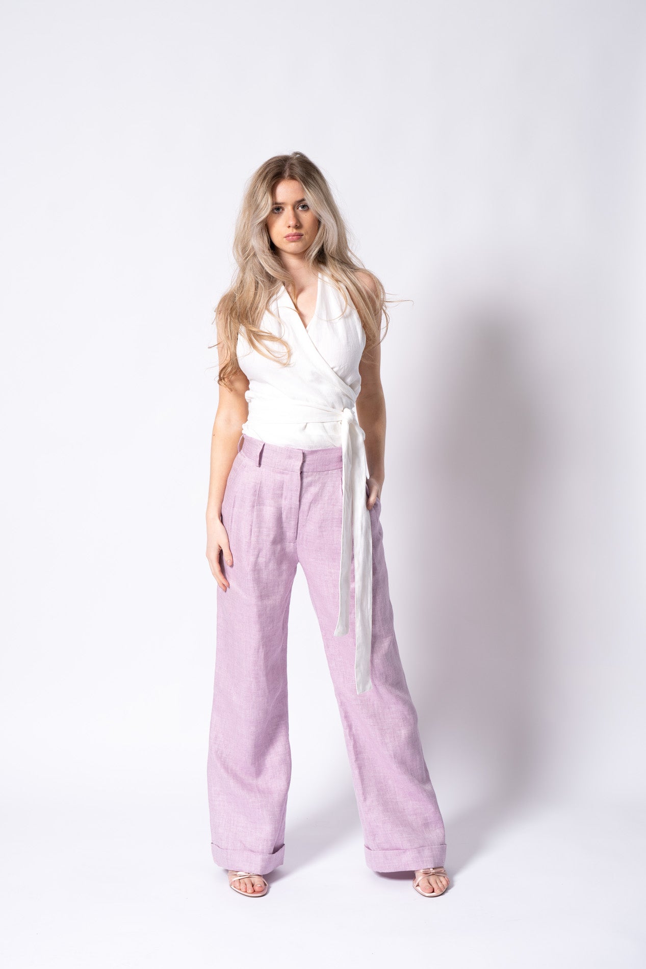 Reinvigorate your office wardrobe essentials with this pair of high-waisted pants. Tailored from linen, this sophisticated light pink style has wide legs and folded cuffs.